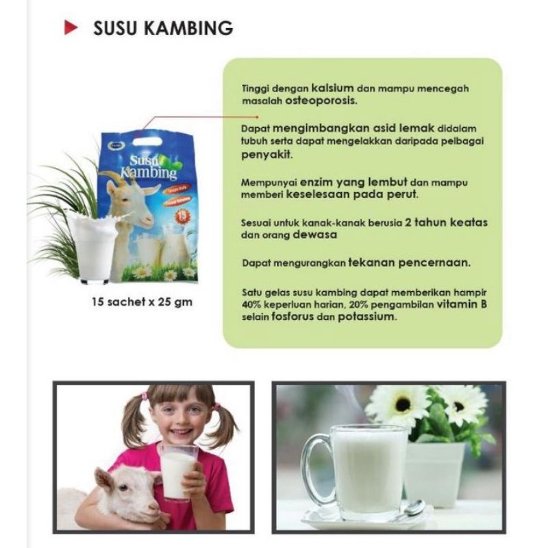 Susu ini mengandung nutrisi penting seperti lemak protein vitamin dan mineral seperti vitamin. Bilamana perkembangan positif ini wujud sudah. Ini kerana ibu hamil yang minum susu kambing secara tidak langsung bayi dalam kandungan juga akan menerima semua vitamin mineral dan lemak yang sihat untuk sel mereka untuk mula membentuk dengan cara yang terbaik.